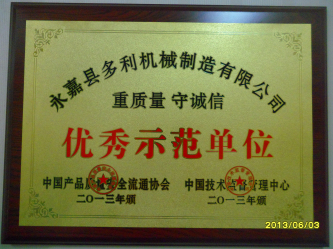 永嘉縣多利機械制造有限公司 重質(zhì)量 守誠信 優(yōu)秀示范單位